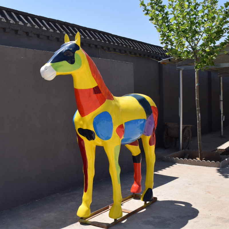 Kuda yang dicat Fiberglass Patung Hewan Simulasi Spot Ornamen Dekorasi Lanskap Padang Rumput Lapangan Taman Besar