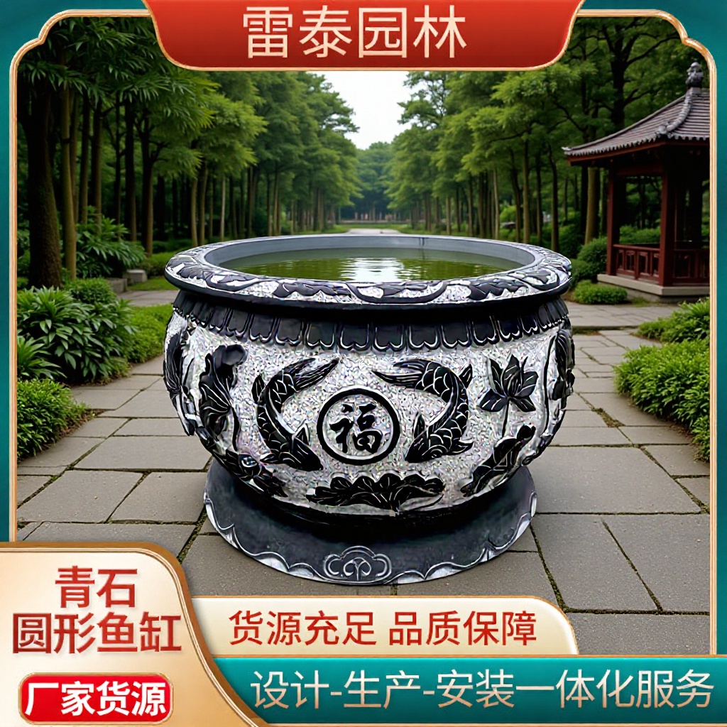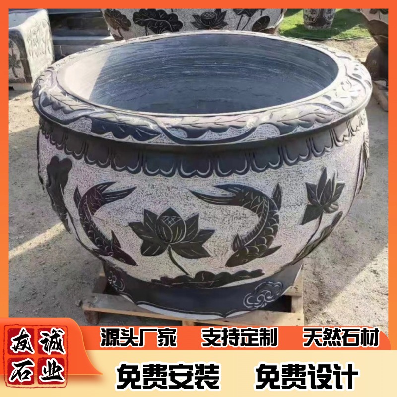 Batu ukiran berlian biru tangki ikan pot bunga luar ruangan taman ikan pertanian pot teratai bulat pot hotel bunga mangkuk batu melalui batu ukiran tangki air