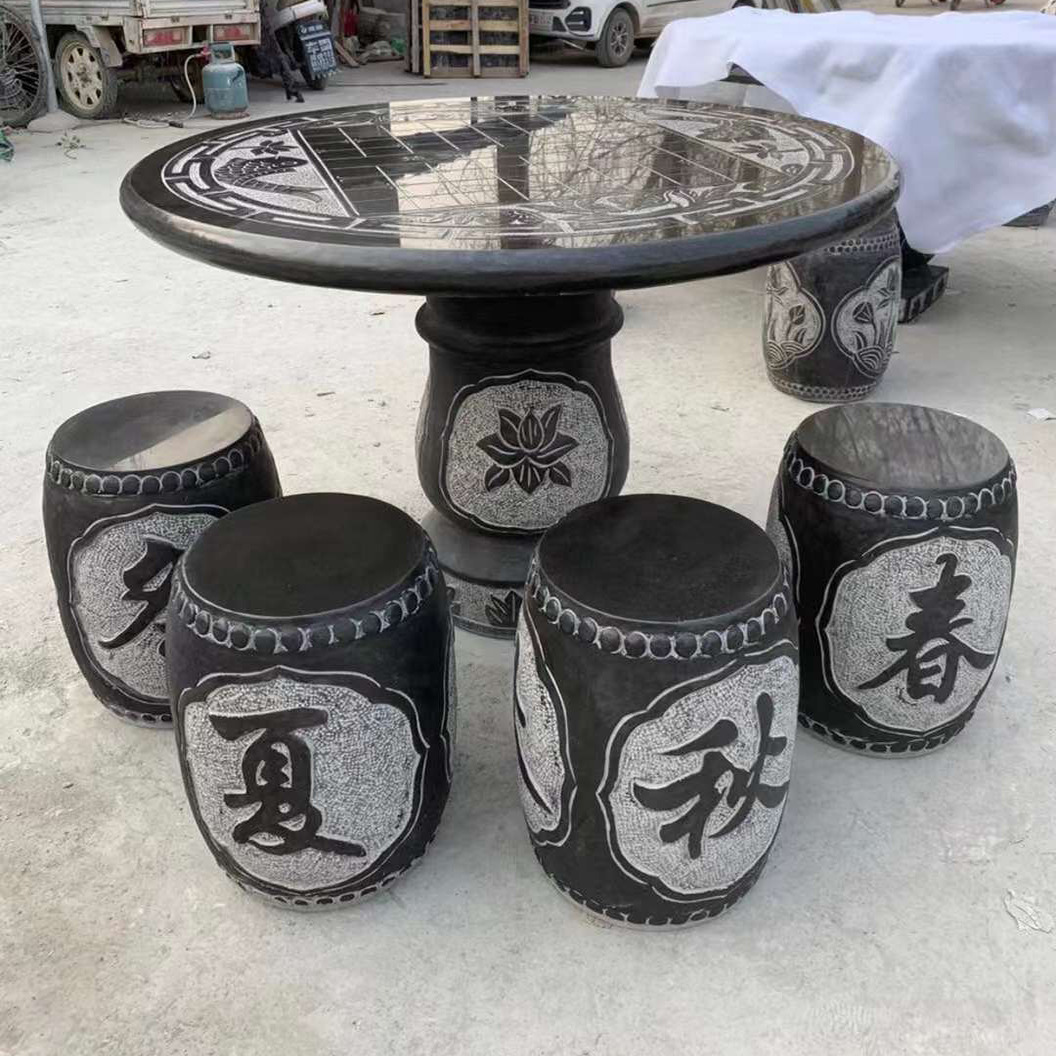Bangku batu meja batu taman luar ruang marmer alami matahari terbenam merah meja batu ukir biru berlian antik meja dan kursi