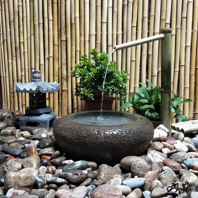 Gaya Jepang mangkuk batu air pertanian ikan zen air kering lanskap hotel luar ruangan batu air bunga mangkuk lanskap Bambu