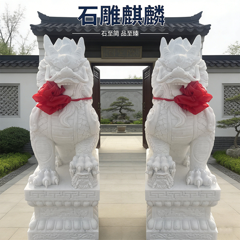 Penjaga pintu Hanbai giok hewan buas rumah lorong halaman dekorasi hotel batu ukiran Kirin pasang