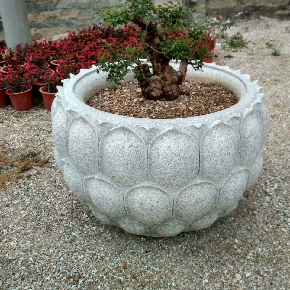Pot bunga batu balkon batu granit ukiran bonsai silinder produsen lanskap vas