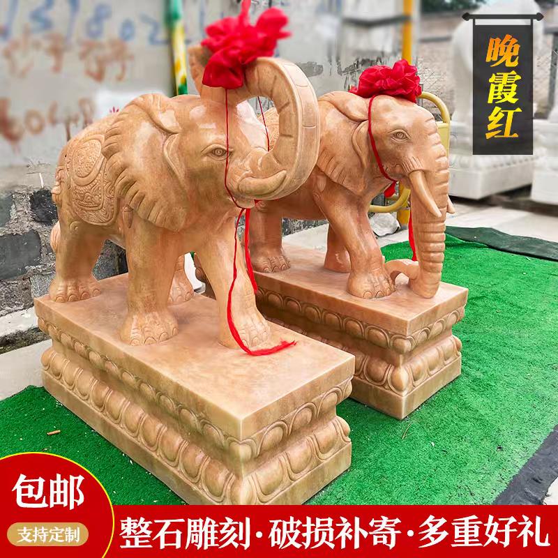 Patung gajah ukiran batu, patung gajah marmer putih patung gajah merah matahari terbenam