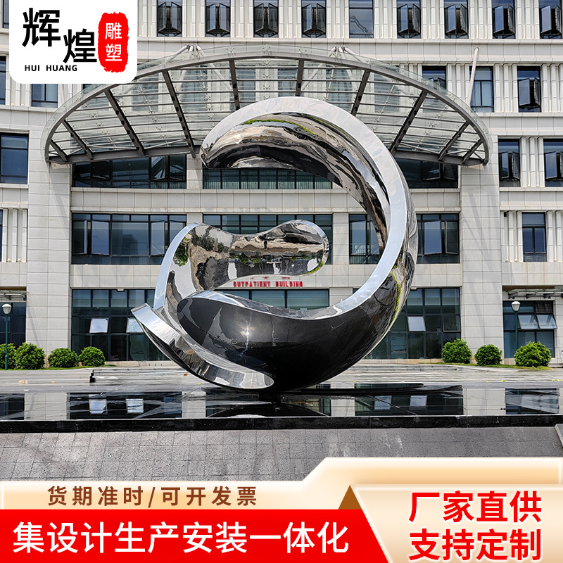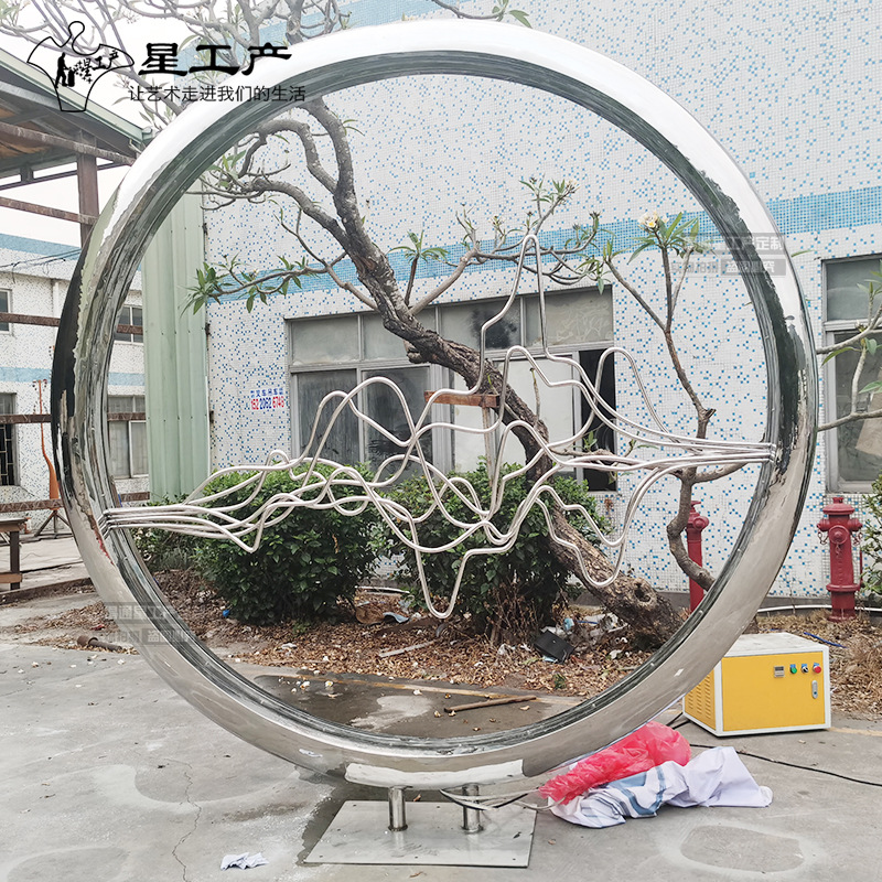 Patung cermin baja tahan karat, luar ruangan kreatif pemodelan besi bangunan luar ruangan pemandangan seni dekorasi lanskap