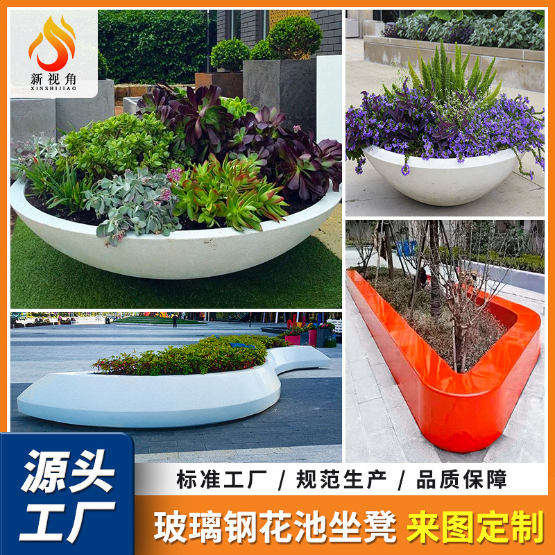 Kursi taman lanskap taman luar ruangan, kursi panjang Meichen bentuk khusus bangku kolam bunga serat kaca