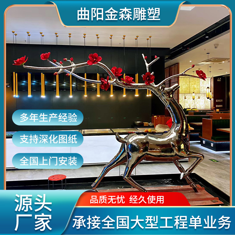 Sumber pabrik grosir pemandangan cermin baja nirkarat patung rusa luar ruangan penjualan rumput kantor abstrak dekorasi berongga
