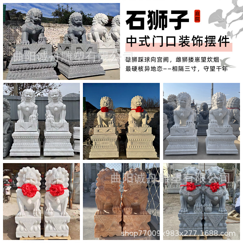 Ukiran batu marmer putih singa sepasang singa pintu dekorasi dekorasi singa batu di pintu depan halaman hotel perusahaan