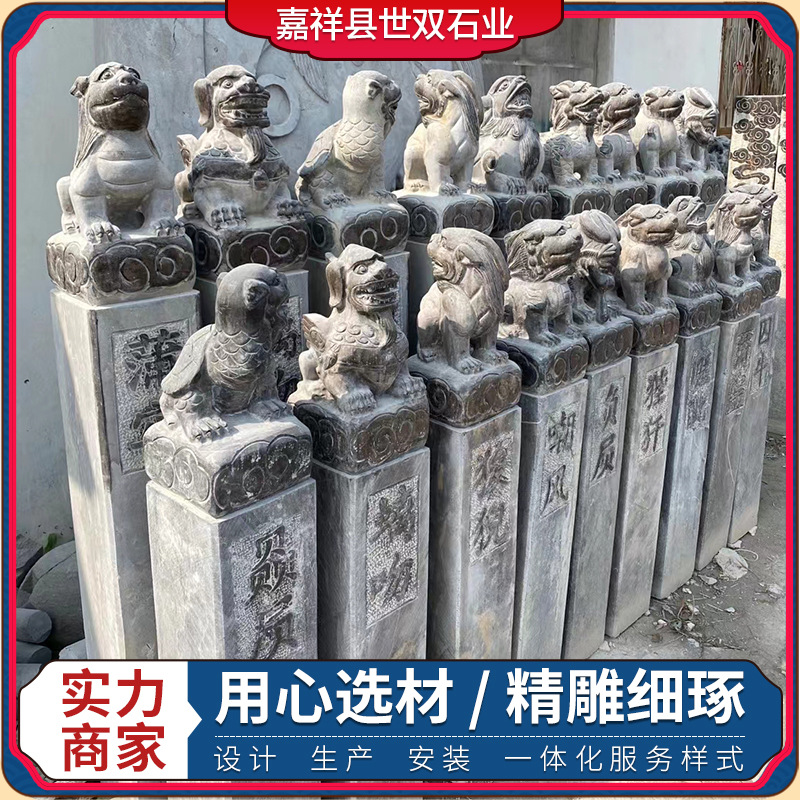 Batu ukiran kuda antik bluestone terikat kolom bluestone baut tua batu kuda singa Kylin dekoratif baut kolom kuda