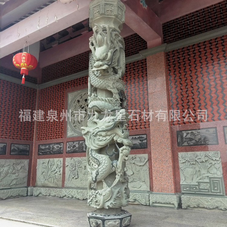 Kolom panpanjang ukiran batu naga biru kolom budaya persegi Kolom relief marmer jam tangan kolom batu granit besar