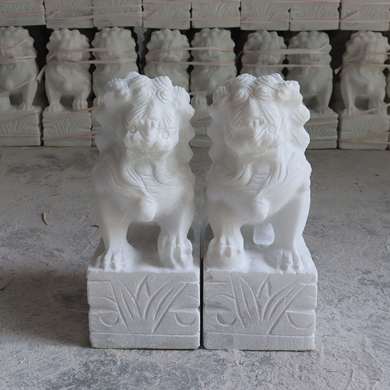 Ukiran batu singa kecil sepasang pemakaman marmer putih batu ukuran kecil singa rumah pintu kota dekorasi rumah marmer kasar ukir