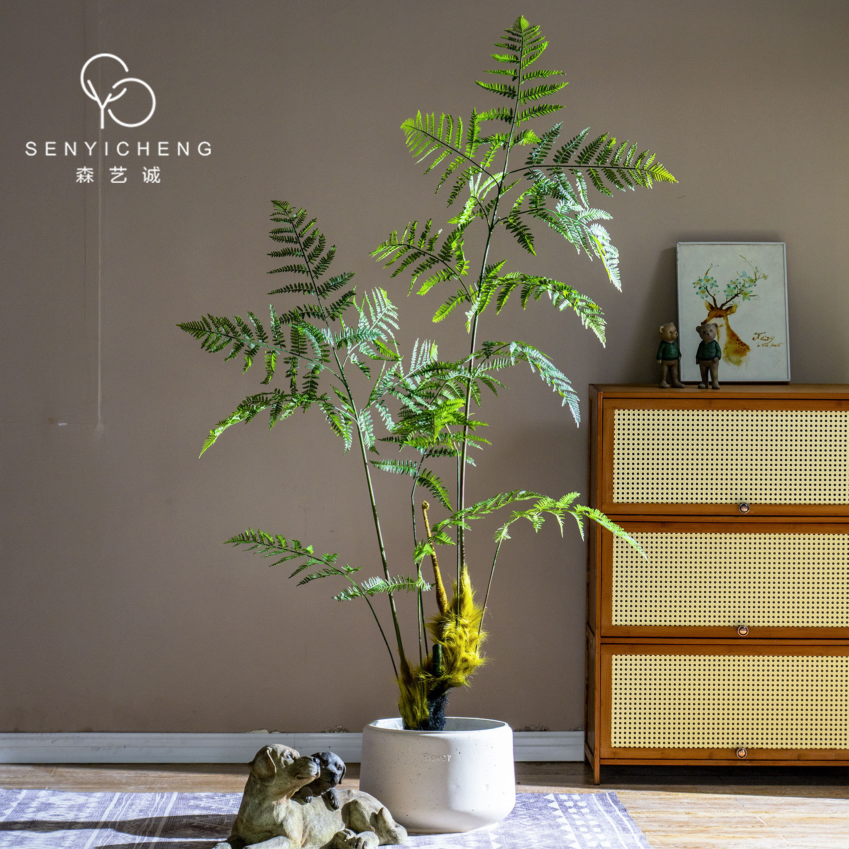 Tanaman hijau buatan, ornamen dekorasi ruang tamu dalam ruangan, tanaman Fern monyet emas imitasi, tanaman bonsai kepala monyet que monyet