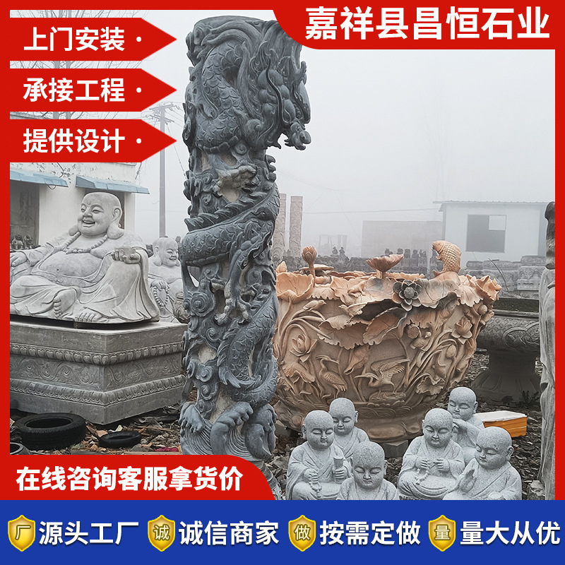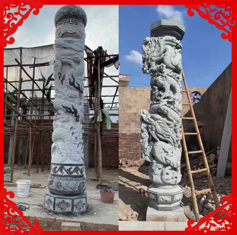 Pasokan langsung dari pabrik Qingshi Panlongpillar granit Ancestral kolom Naga Budaya persegi