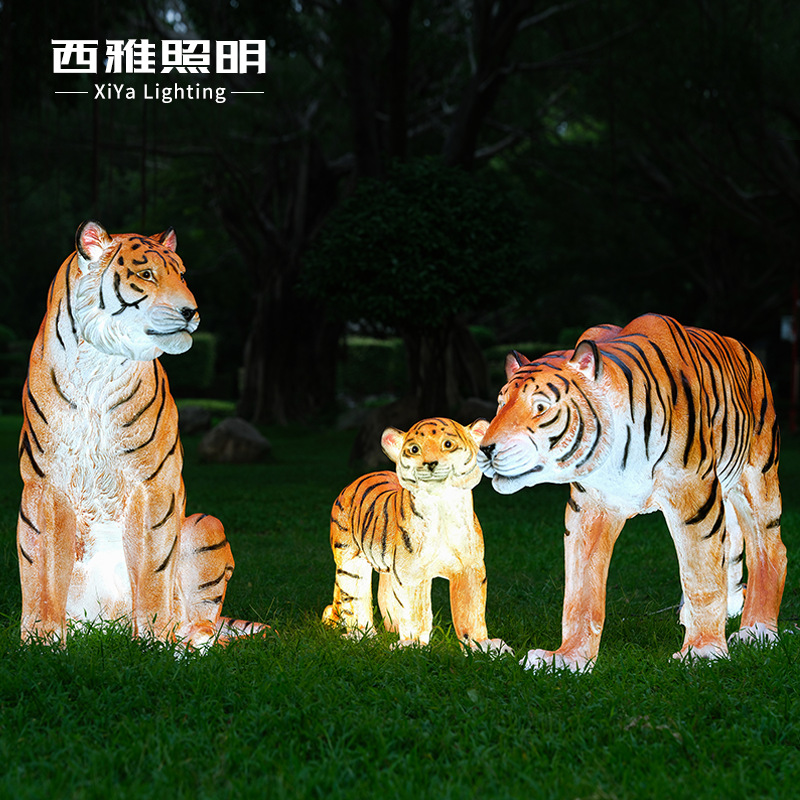Lampu dekorasi hewan buatan, lampu harimau bercahaya dekorasi taman luar ruangan lampu rumput FRP taman patung lampu dekorasi