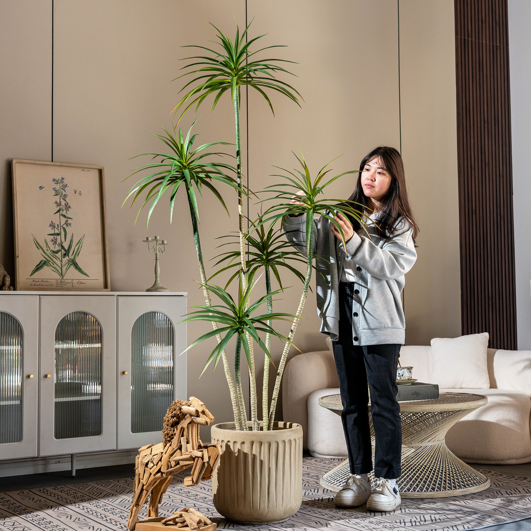 Tanaman buatan pohon naga, ornamen dekorasi ruang tamu dalam ruangan, pohon bunga buatan bionik, pohon darah naga