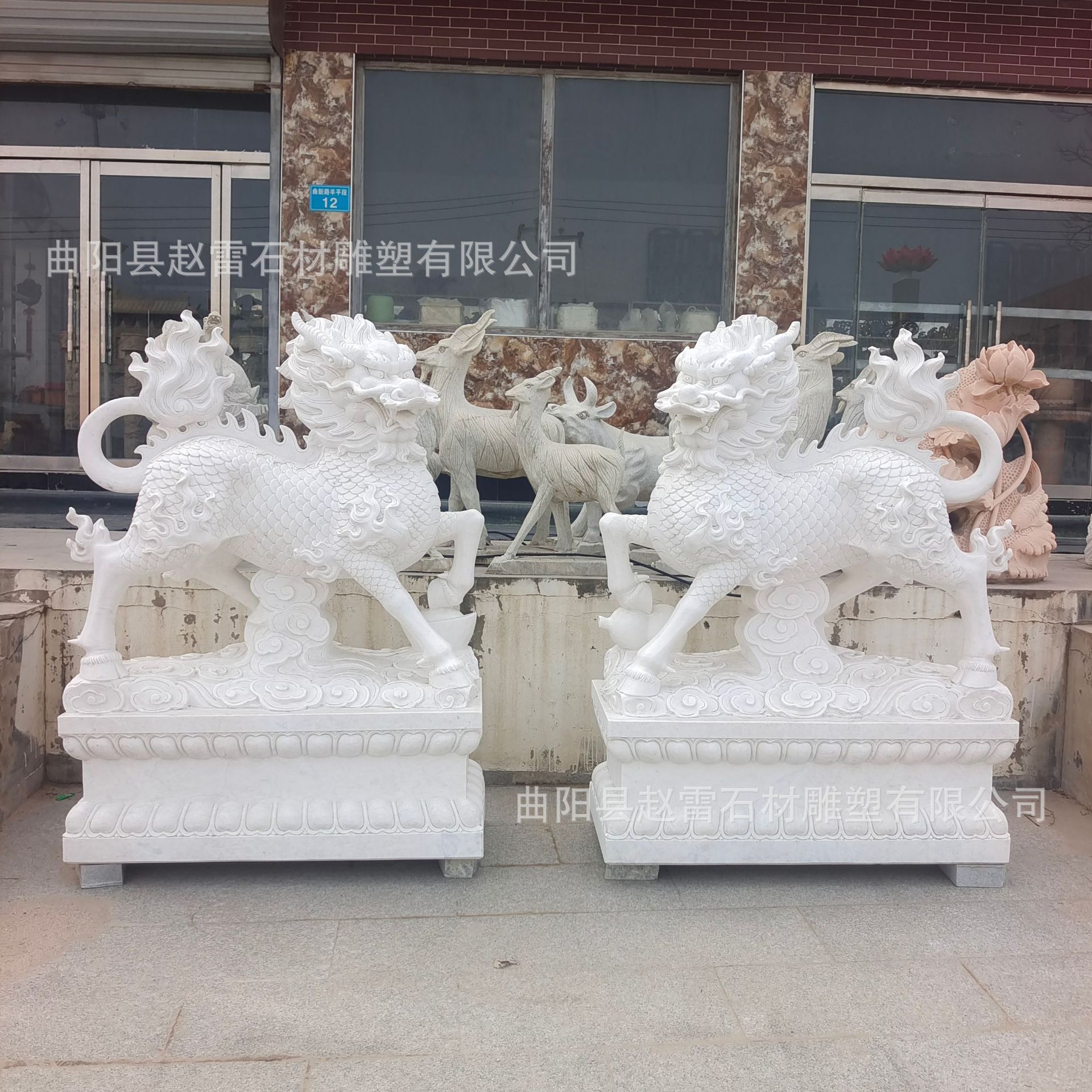 Aula candi Hanbai batu giok Kirin Area pemandangan taman batu Kirin sepasang batu marmer Kirin