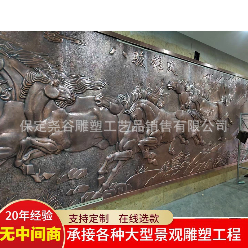 Bantuan tembaga tempaan besar cor tembaga Delapan Kuda tiga dimensi mural lanskap budaya tema dinding lanskap patung latar belakang dinding