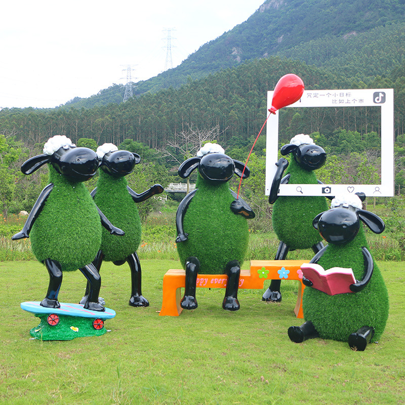 Kartun Panda Patung FRP Hewan Domba Kelinci Ornamen Taman Area Pemandangan Luar Ruangan Dekorasi Lansekap Taman