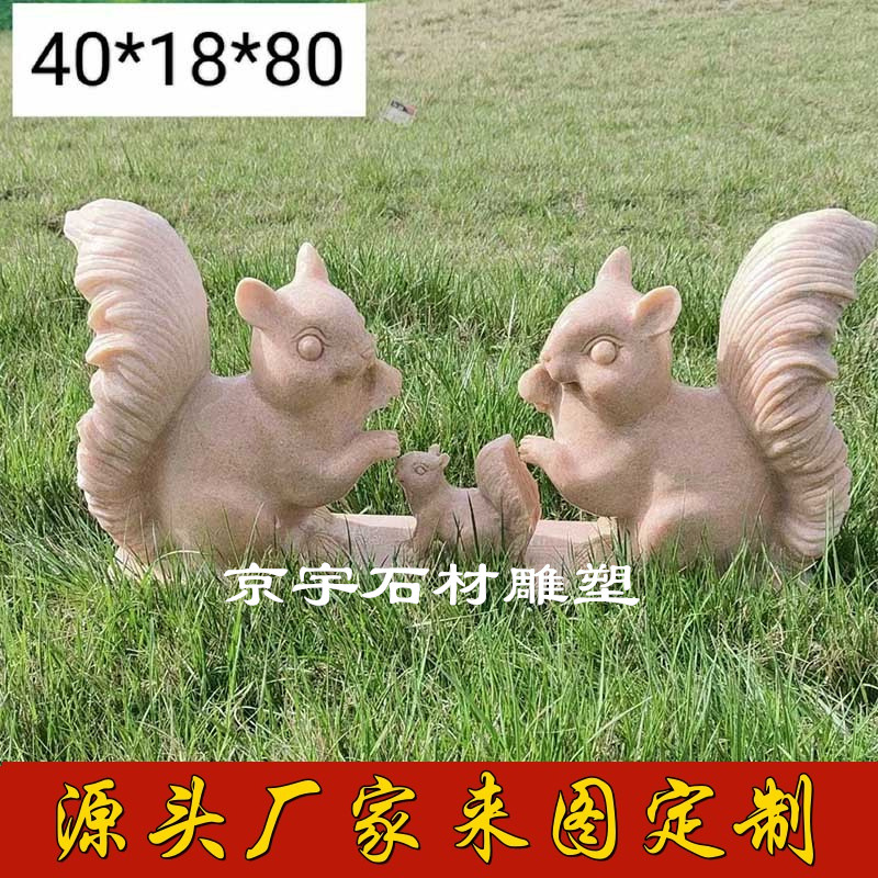 Patung hewan merah matahari tenggelam marmer tupai ukir batu dekorasi lanskap rumput taman luar ruangan