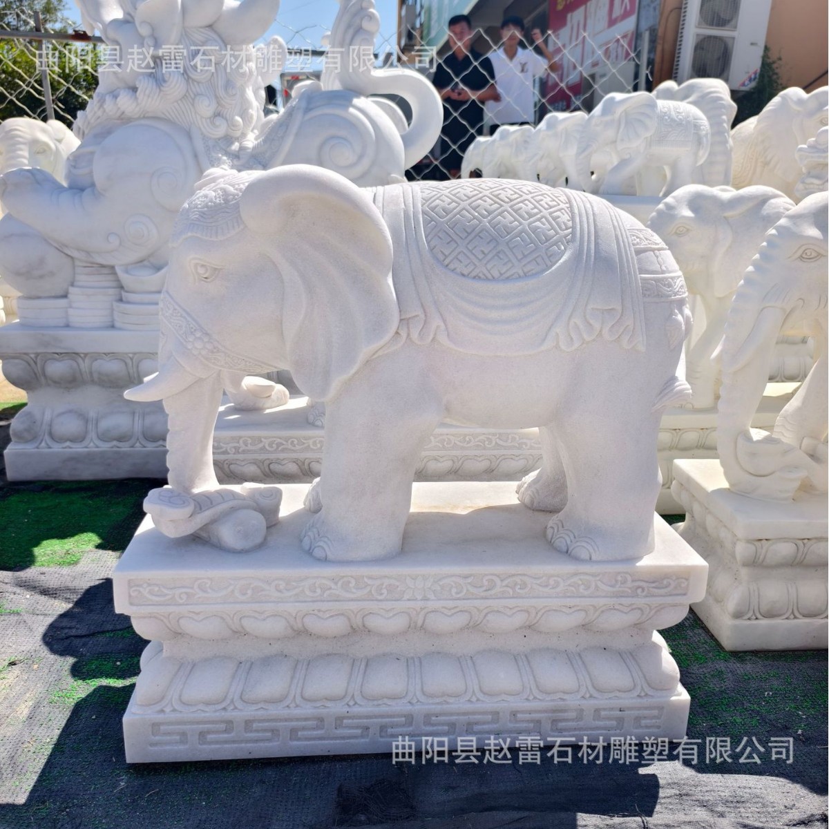 Ukiran Batu Gajah Giok Putih Sepasang Gajah Batu Biru