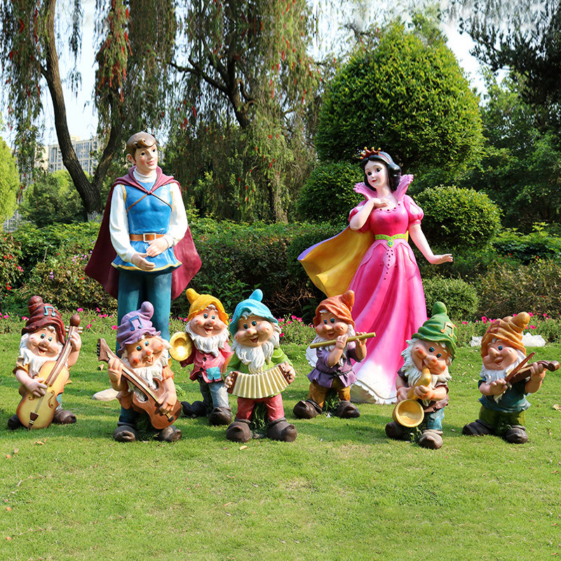 Ornamen dekorasi lanskap taman kartun patung kurcaci tujuh putih salju serat kaca besar luar ruangan