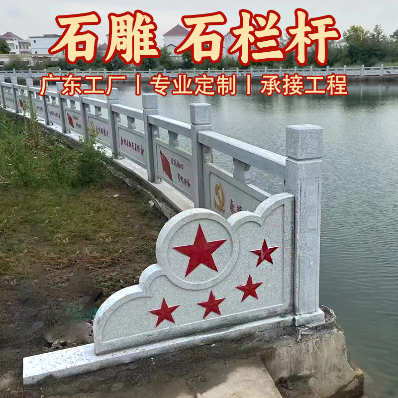 Pagar batu granit halaman taman pagar lengkungan jembatan batu ukir di kedua sisi pagar batu marmer putih