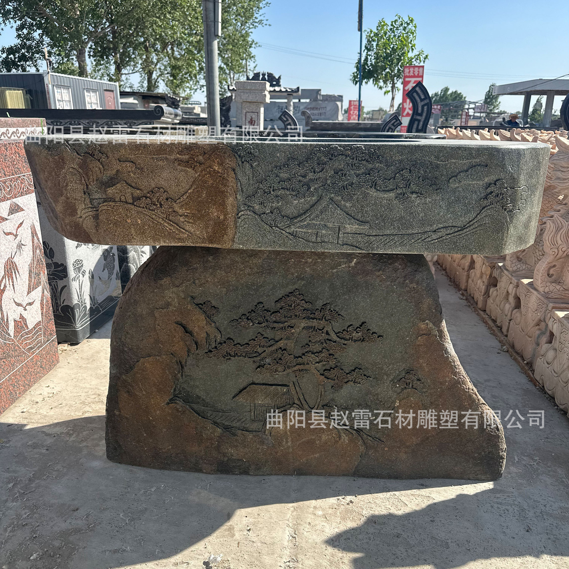 Ukiran Batu Alami Baskom Cuci Tangan Luar Ruangan Baskom Kolom Gaya Seni Kolom Alami Baskom Cuci Tangan