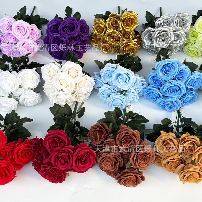 Buket mawar 10 kepala simulasi buket pernikahan bunga buatan alat peraga pernikahan besar dekorasi pernikahan bunga sutra