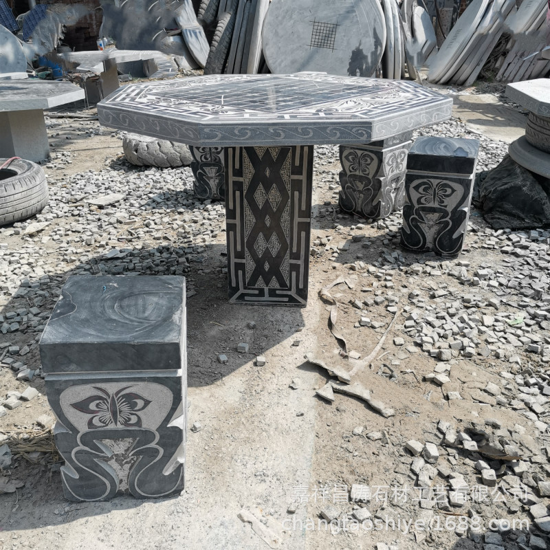 Disesuaikan pabrik batu berlian biru meja bangku batu rumah halaman komunitas batu bantuan papan catur dekorasi meja batu