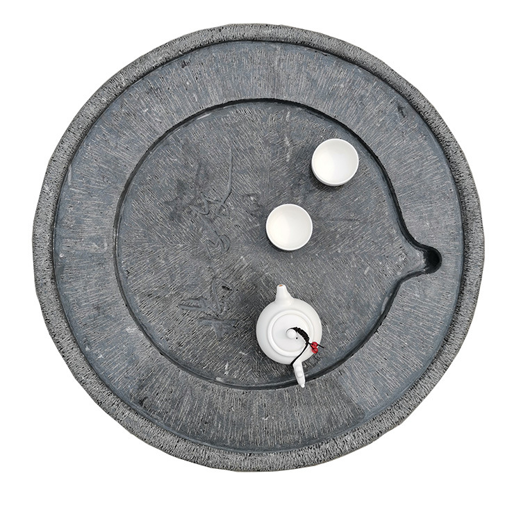 Nampan teh ukir batu bluestone alami, set teh batu kung fu ruang tamu rumah, meja teh batu bulat retro jepang