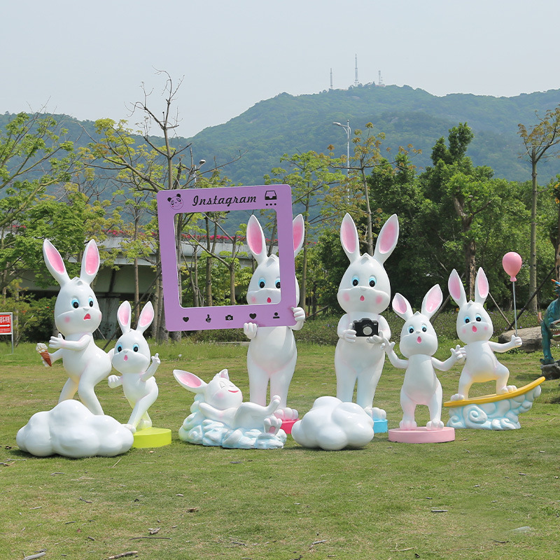 Lanskap taman luar ruangan dekorasi patung kelinci kartun mall belanja taman taman halaman dekorasi cantik tempat indah
