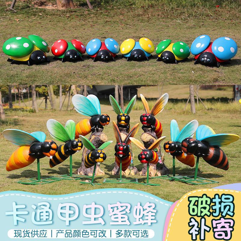 Patung serangga kartun serat kaca lebah ladybug taman lanskap sketsa real estate tempat indah kecil ornamen dekorasi luar ruangan