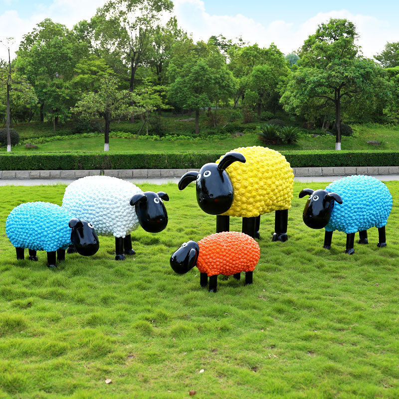 Luar Ruangan Kartun Keriting Domba Fiberglass Patung Sketsa Lansekap Taman Dekorasi Taman Area Pemandangan Komunitas Dekorasi Rumput