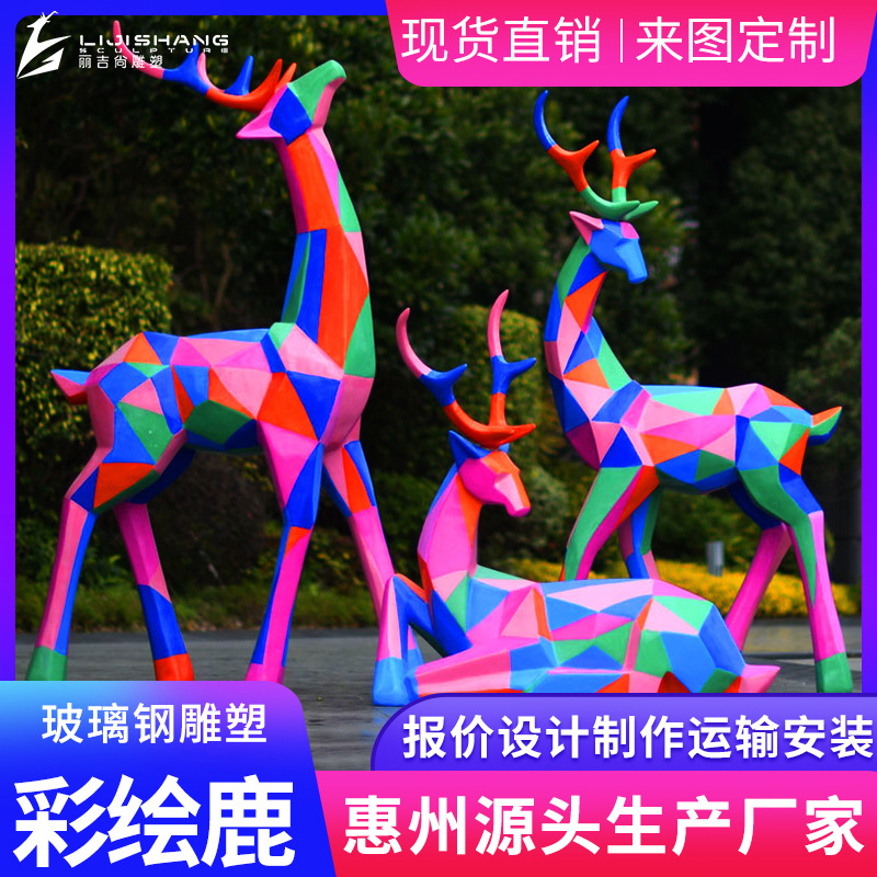 Patung rusa serat kaca luar ruangan persegi besar patung serat kaca taman rumput lanskap lukisan geometris patung rusa