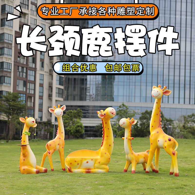 Kartun jerapah patung fiberglass lanskap taman luar ruang komunitas komersial pemandangan dekorasi foto titik indah sketsa kecantikan Chen