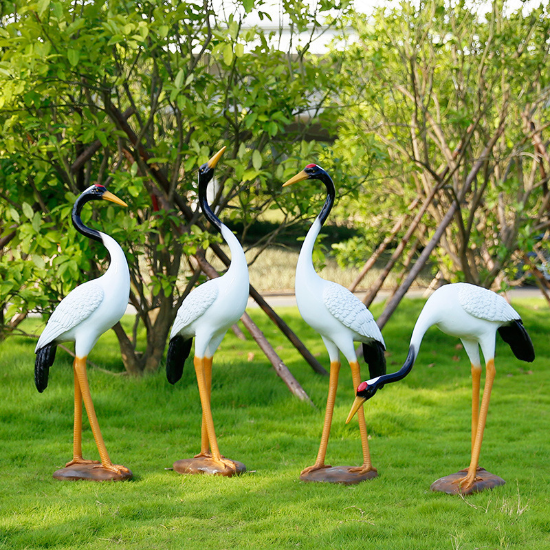 FRP patung simulasi derek mahkota merah, hewan derek taman, patung lanskap taman luar ruangan skala besar