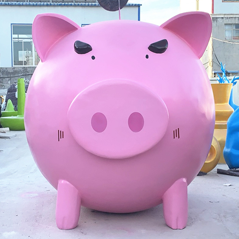 Fiberglass kartun babi patung hewan pabrik lanskap luar ruangan besar pemandangan pemandangan taman Mall pintu kepala dekorasi Kecantikan