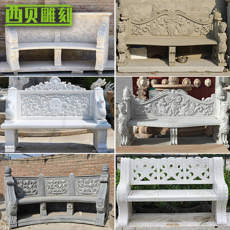 Batu ukir marmer kursi batu luar ruangan, dekorasi belakang kursi panjang santai ukir Taman Taman