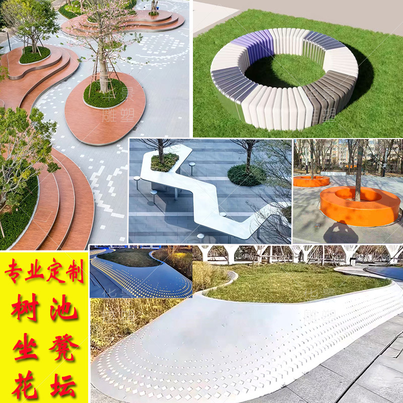 Bangku kolam pohon luar ruangan, kursi santai pusat perbelanjaan, ornamen lanskap, kolam tanam berbentuk khusus, produsen bangku kolam pohon fiberglass