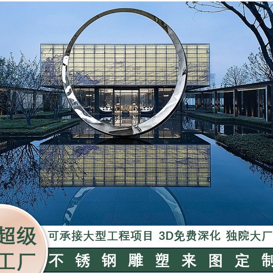 Produsen disesuaikan luar ruangan besar abstrak waterscape sketsa persegi lanskap taman cincin bulan patung baja tahan karat