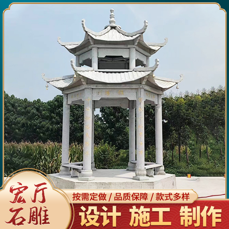 Pavilion batu ukir indah taman paviliun, paviliun batu heksagonal ukiran berlian ganda