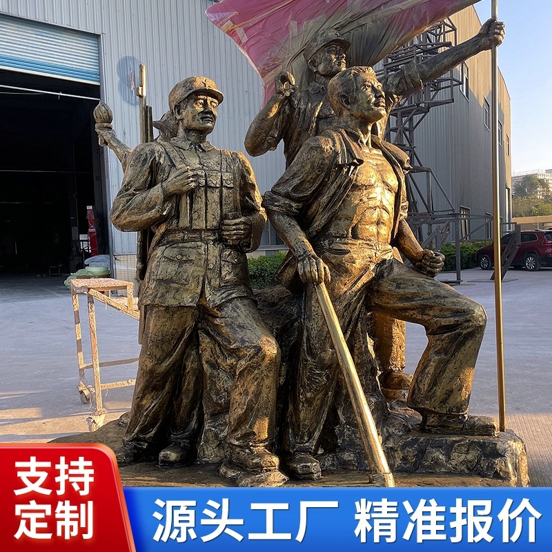 Produsen Dekorasi lantai patung kampus taman lanskap luar ruangan tembaga imitasi patung Tentara Merah tembaga cor serat kaca