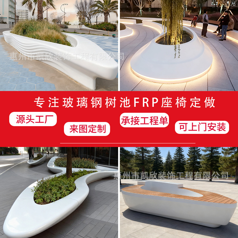 FRP kursi kolam pohon khusus berbentuk taman luar ruangan lanskap FRP bangku sekolah persegi besar bunga melalui Meichen produsen