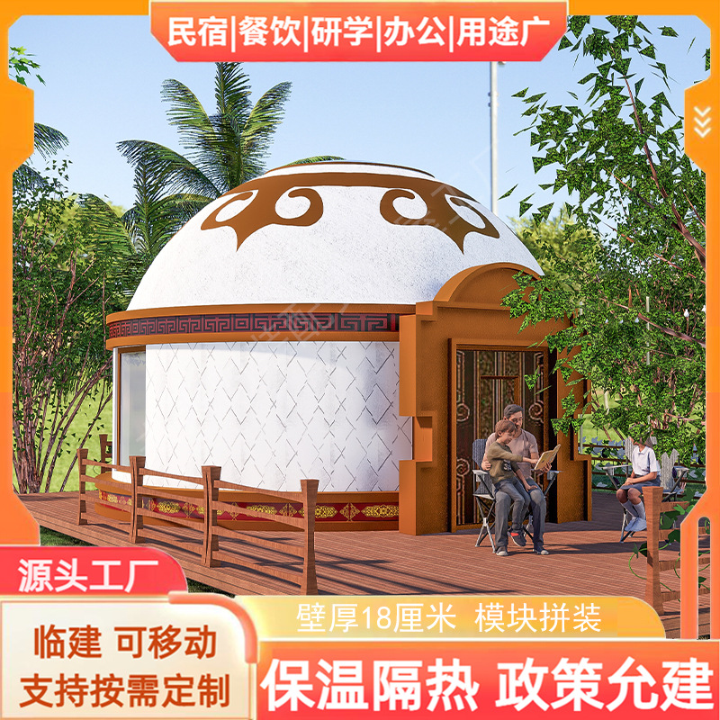Perakitan modular akomodasi bergaya yurt, insulasi termal, konstruksi padang rumput sementara, rumah terintegrasi berbahan material EPS.