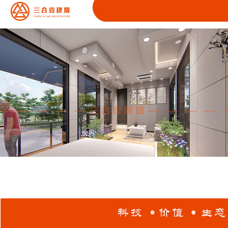Vila baja ringan rumah rakitan pelat ukiran logam ruang bergerak rumah kayu villa Lounge Suzhou Wuxi