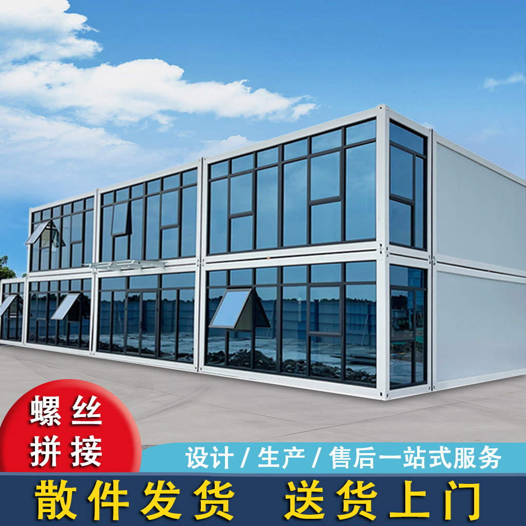 Rumah Papan Bergerak Kontainer Rumah Tirai Kaca Mudah Dibongkar Perakitan Sederhana Situs Kantor Terpadu Pedesaan