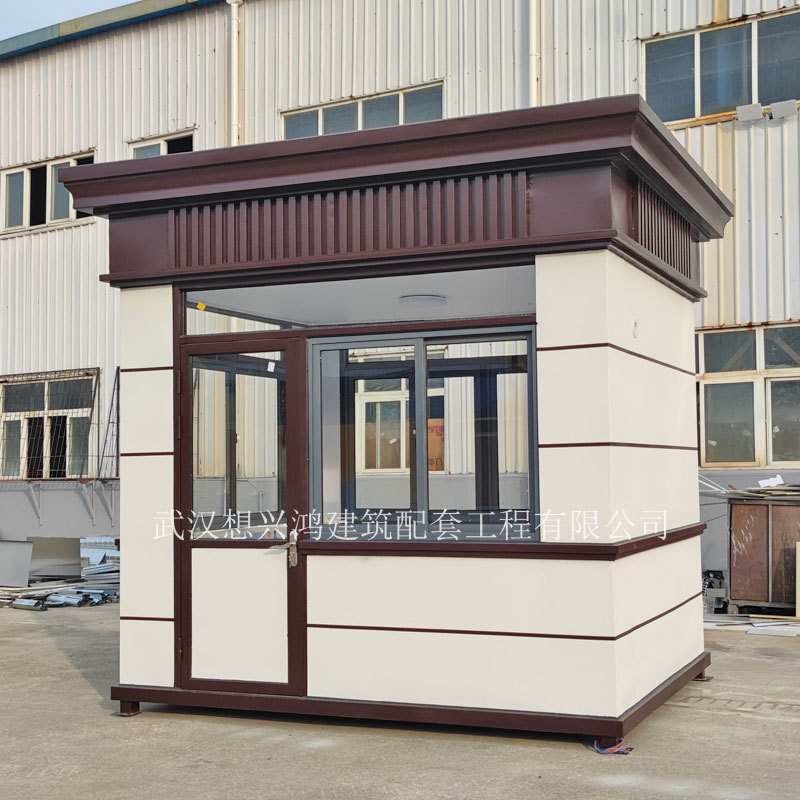 Pos keamanan struktur baja, bilik merokok baja tahan karat bergerak untuk luar ruangan di pintu masuk komunitas, bilik penjaga bergerak dengan sudut membulat.