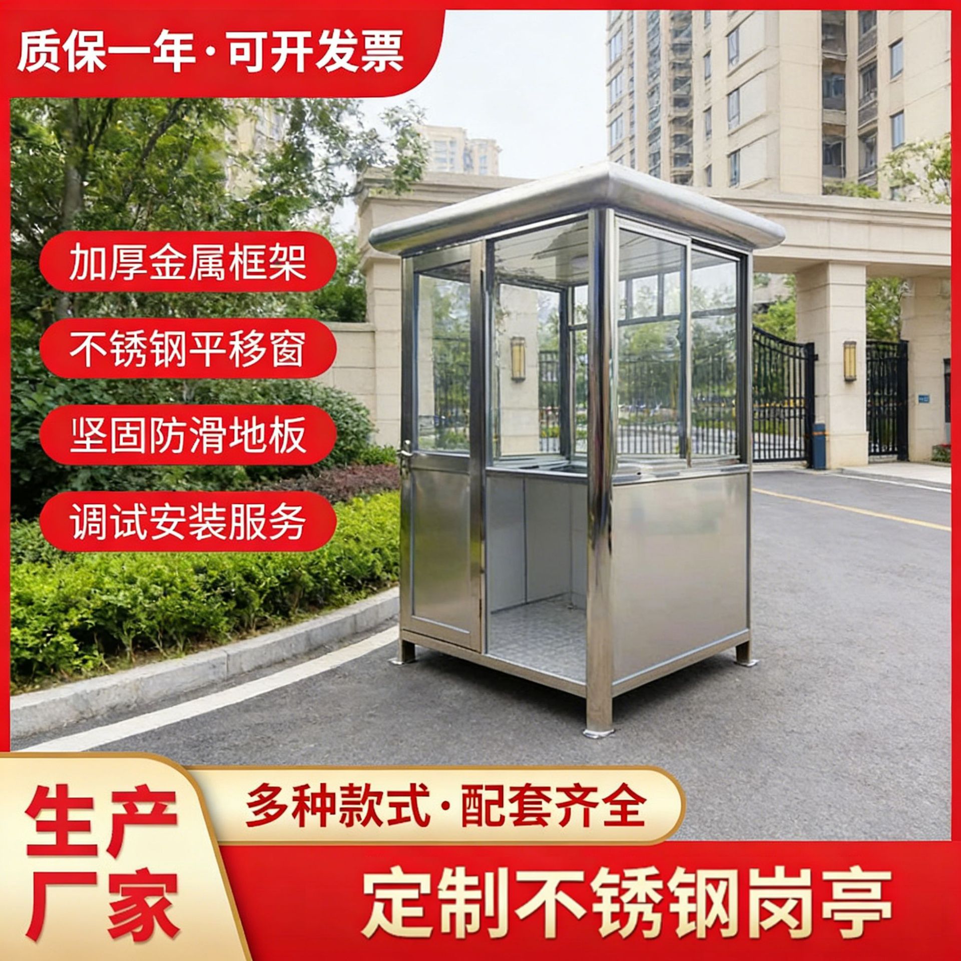 Stan keamanan booth baja tahan karat 201 material Stan keamanan ponsel produk selesai pasokan pintu Stan komunitas