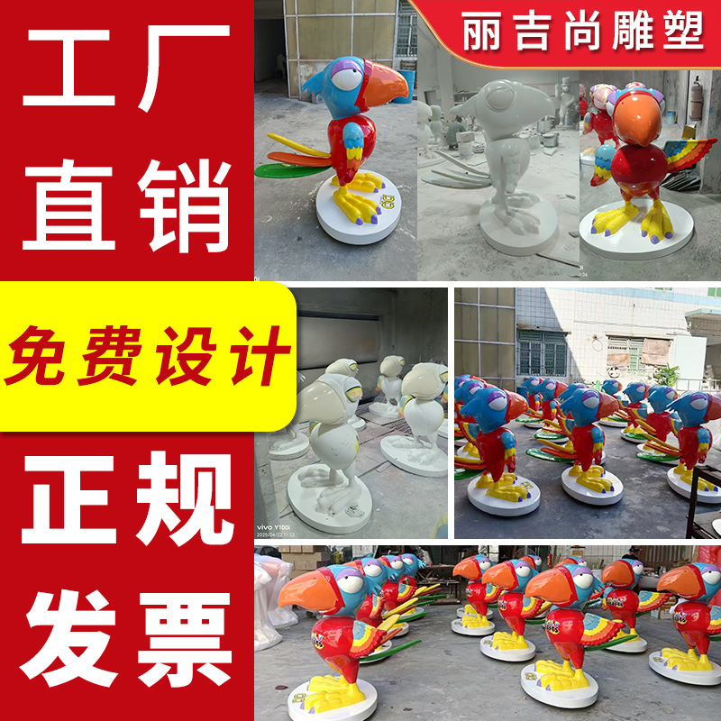 Perdagangan Luar Negeri Simulasi Hewan Parrot Fiberglass Patung Taman Luar Ruangan Pemandangan Taman Kreatif Dekorasi Halaman Burung Kecil