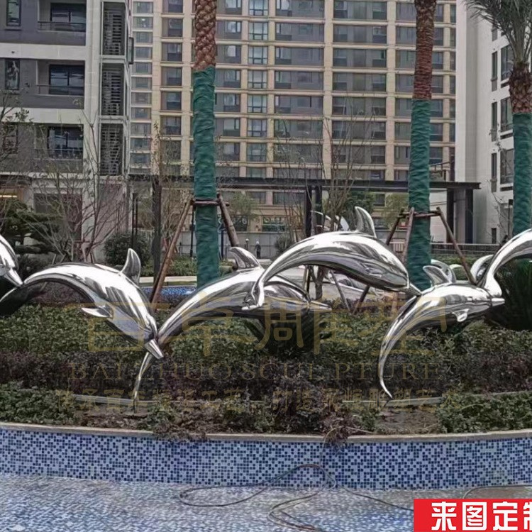 Sumber produsen patung baja tahan karat patung hewan lumba-lumba kolam renang lanskap air dekorasi lanskap luar ruangan sketsa