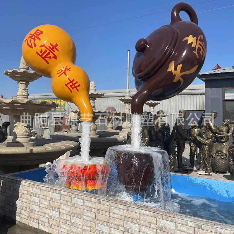 Pot teh serat kaca luar ruangan, dekorasi lanskap lantai persegi taman rumah teh air besar gantung patung